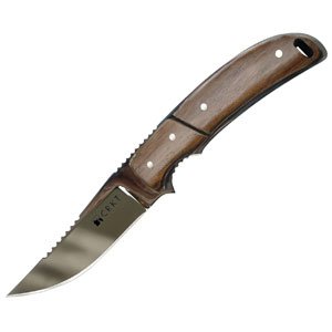 Features a 3.50 in. stainless steel drop point blade and a 4.38 in. bamboo handle. Comes complete with a leather sheath.