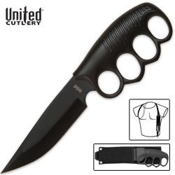 This special knuckle guard is designed for extra hand protection. Constructed with a 5-Inch 420 J2 stainless steel blade and a cast metal handle with black non-glare finish. Includes a black nylon sheath, fully adjustable nylon shoulder harness, belt loop, boot clip, and quick release blade insert, reversible for left or right hand positions.
