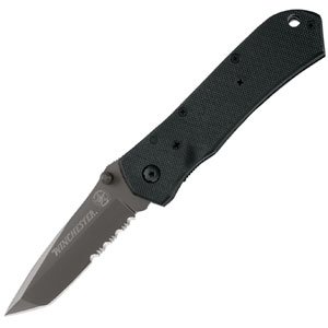 Winchester Conflict I, Nylon Handle, Tanto Pt, Black Blade, ComboEdge